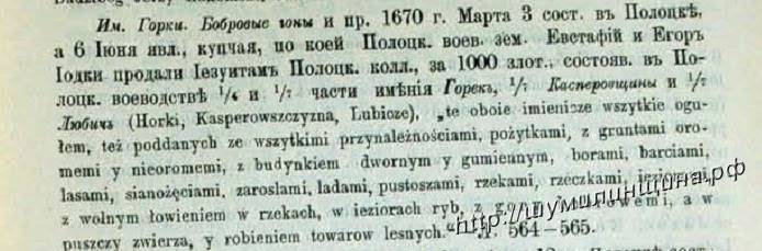 ПРАВИТЕЛЬСТВУЮЩИЙ СЕНАТ В ОБЩЕМ СОБРАНИИ НАХОДИТ - Фёдор Иодко в 1639 году приобрёл покупкою часть земли в имении называемом ГОРКИ-ЛЮБИЧИ и имел 3-х сыновей: Самуила, Ефстафия и Георгия (Егора).