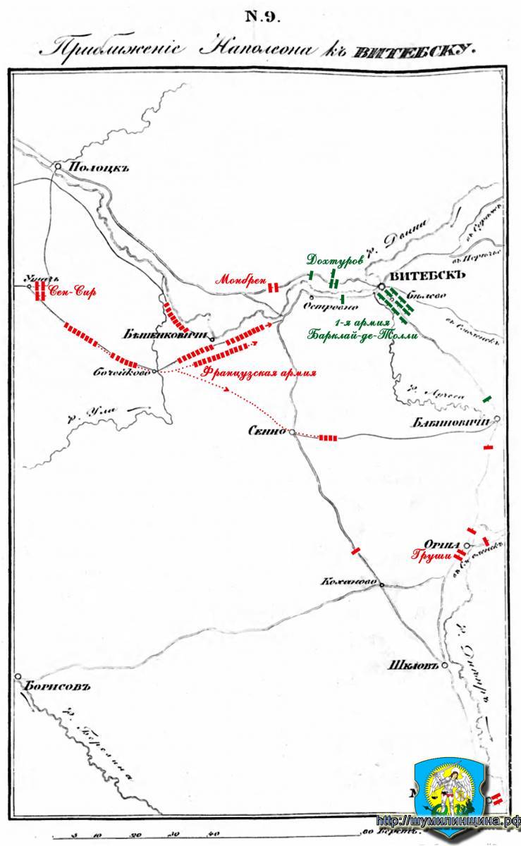 Извиняюсь, с датой погорячился, 13.07 по старому, 25.07 по новому стилю. Важность этих боев не очень подчеркивается, но по сути они дали возможность вывезти из Бешенкович запасы армейского провианта и не дали позволили французским войскам окружить Витебск. Через два дня, прикрывая отступление русской армии к Смоленску, отряд Палена примет бой под Лучесой и почти день удержит основные силы Наполеона, что позволит организованно отойти на соединение с Багратионом. Первоначальный план летней компании будет провален, Наполеон останется в Витебске на две недели.