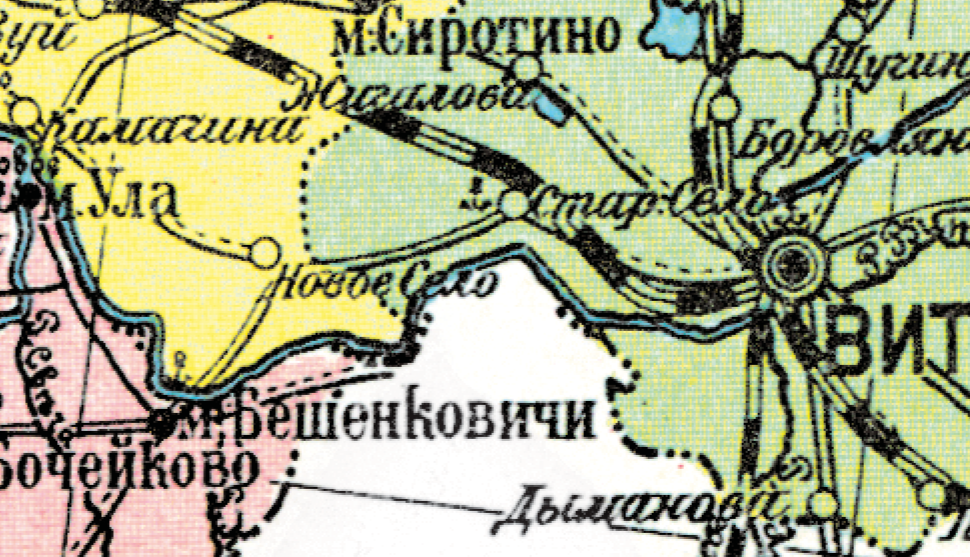 Пожалуй единственная карта конца 19 века, где Новое Село - крупнейший населенный пункт окрестностей между Бешенковичами и Сиротино.
