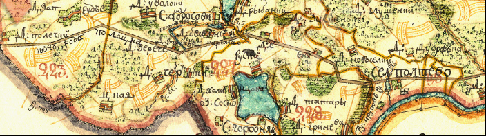 Лучше всего эта дорога показана на карте 1920г, поворот нелево примерно в полутора км от мостика в Полтево.
