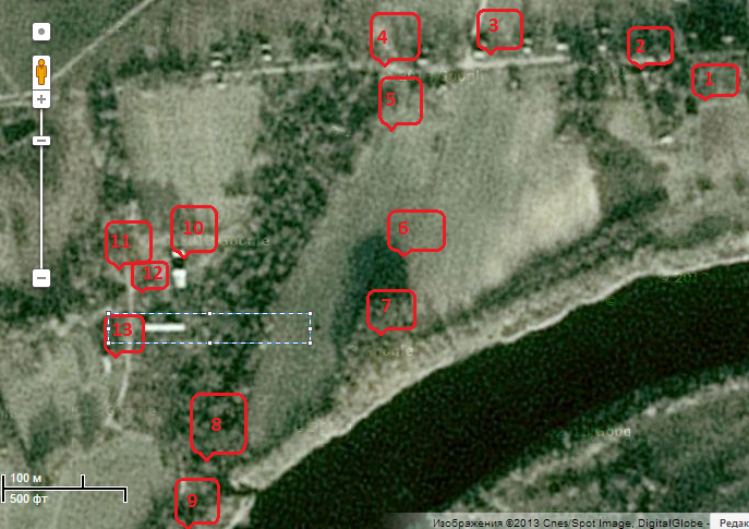 В пунктире - новая конюшня. Координаты перекрестка на Дубровские, Ложок (точка 3):
