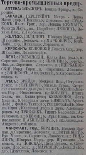 Несмотря на то, что Шумилино в начале 20 века было маленькой деревушкой, наличие железнодорожной станции и, видимо, особые условия хозяйствования на прилегающей территории способствовали тому, что к 1902 году в деревне было сосредоточено 100% торговли железом и керосином всего Полоцкого уезда, примерно 40% мануфактуры и 25% бакалеи. Бакалея принадлежала Герштейн, Меер-Лейба Мовш.; Железо - Гилдлин, Шмерка Морд. и Маркович, Бенц-Лейб.; Керосин - Беленький, Генох Сим.; Мануфактура - Гиндлин, Шмерка Морд. и Маркович, Бенц-Лейб.