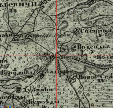 Доказательной базой было бы нахождение орудийной картечи. Дело в том, что пули могли применяться и французскими фуражирами, тут они потом с полгода шастали, а вот орудия использовались только однократно. Косвенно на Тешловичи указывает и характер местности, позволявшей организовать оборону при наступлении с юга (со стороны Нового Села), и прямое указание расстояния от места первичного боя до Полтево - 12 вёрст. В Куриловщине стояла ещё группировка, бой то шёл в течение дня, на всём этом протяжении тракта, это было арьегардное сражение. Там много деревень, которые были на карте 1790 года и отсутствуют в середине 19 века, но Тешловичи и Полтево самые крупные, потом упоминаются как Погосты. Полтево правда отстроилось раньше. Куриловщина немного южнее тракта была, только станция на перекрёстке, видимо поэтому так сильно не пострадала.