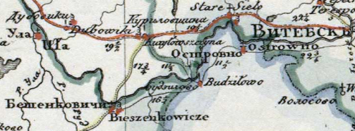 Я уже размещал этот отрывок на страничке Куриловщина, но честно говоря до сих пор не определился, о каком перекрёстке идёт речь, где располагался отряд Палена и где Крейца. Дело в том, что дороги из Бешенкович были две, одна через Яновиль на Тешловичи, другая через Митковичи на Куриловщину. Таким образом первоначальный бой мог завязаться и там, и там. Но судя по всему Крейц стоял в Тешловичах, Пален в Куриловщине. В ходе ожесточённого боя с применением артиллерии похоже Тешловичи и были в очередной раз уничтожены. На протяжении 19 века они упоминаются только как Погост, важнейшим перекрёстком становится Почтовая Станция Куриловщина. Но южнее Тешлович появляется Новое Село, которое не имело церкви и в России не могло так называться. Видимо использовалась Тешловичская церковь, а уцелевшие жители перебрались на новое место. Деревня Тешловичи появляется на картах снова только в начале 20 века.