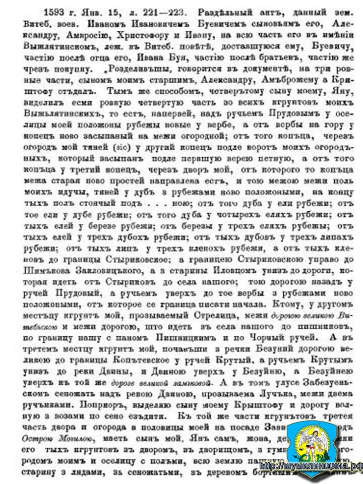 Вот выписка 1552 года. Много полезной информации о нашем крае на сайте потомков Буевичей.http://www.buevich.com/