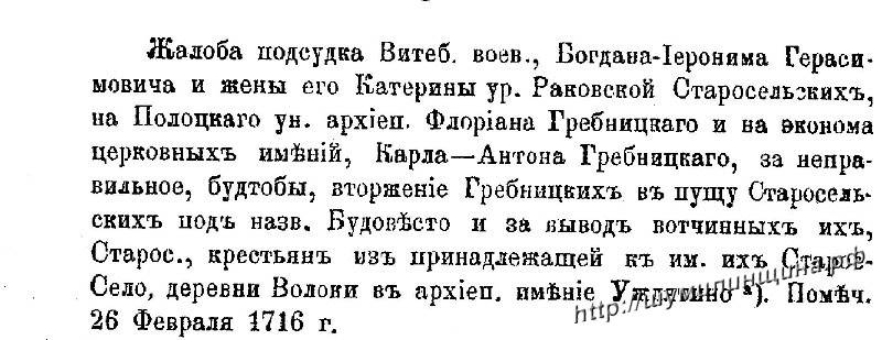 В историко-юридических материалах 1892 года есть документ от 26 февраля 1716 г. в нем упоминется Ужлятино, пуща Будовесто и деревня Волоки( может это Уволоки?)