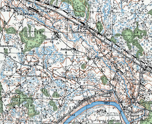 Ужлятинский - церковь и Ужлятинский православный приход Покрова Пресвятой Богородицы, Список селений, которые относились к приходу церкви в 1906 году: Залесье, фольварк; Запущане, деревня; Зароново, деревня; Ковальки, деревня; Лебеды, деревня; Малашенки, имение; Морозово, застенок; Мохонево, деревня; Новички, деревня; Самусяты I, деревня; Самусяты II, деревня; Татарки, деревня; Ужлятино I, деревня; Ужлятино II, деревня; Ужлятинский, погост; Фролки, деревня; Шпунты, деревня.