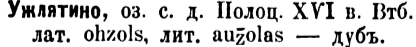 В 19 веке на картах уже присутствует название Ужлятино ( от лит. auzolas - дуб), причем это две деревни: севернее реки Ужлятина, 17 дворов, южнее - Ужлясица. В 1905 году во владении дворянина Студзинского, православного, в числе прочих числились Ужлятино I, 190 дес земли, 22 двора, 206 чел; Ужлятино II, 230 дес земли, 5 дворов, 134 чел; погост Ужлятино, 2 двора, 16 чел. Все в Ужлятинском православном приходе, Старосельская волость Витебского уезда. В 1936 году на карте показаны Ужлятина 1-я (севернее) и Ужлятина 2-я, всего 37 дворов.