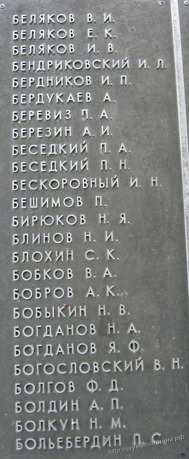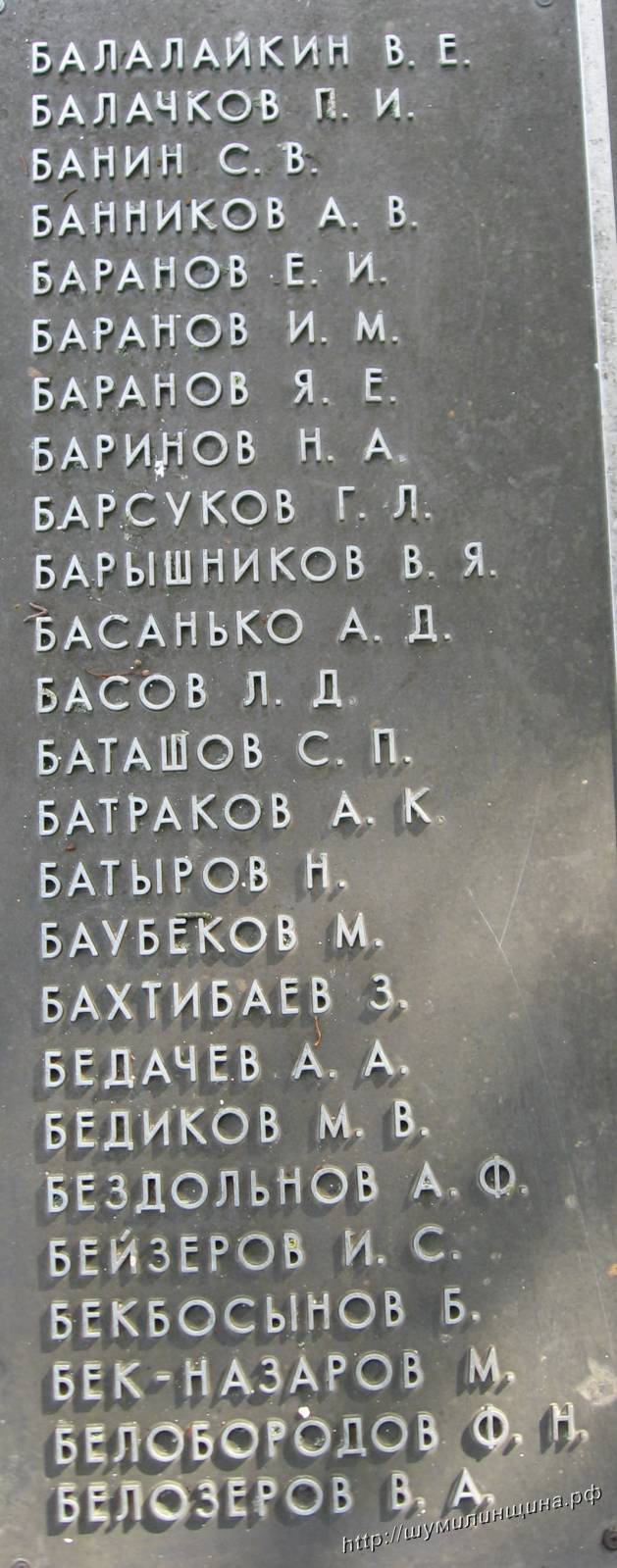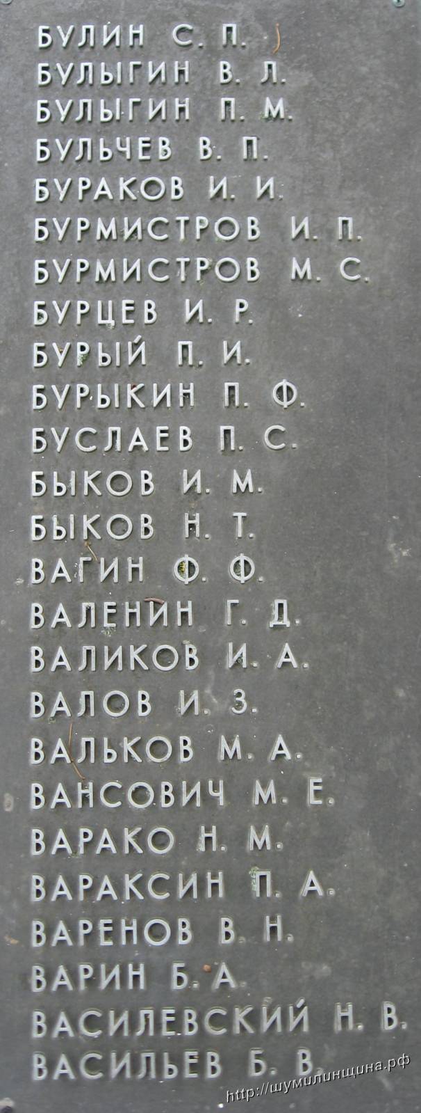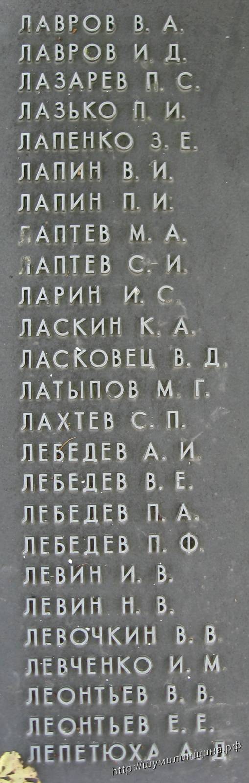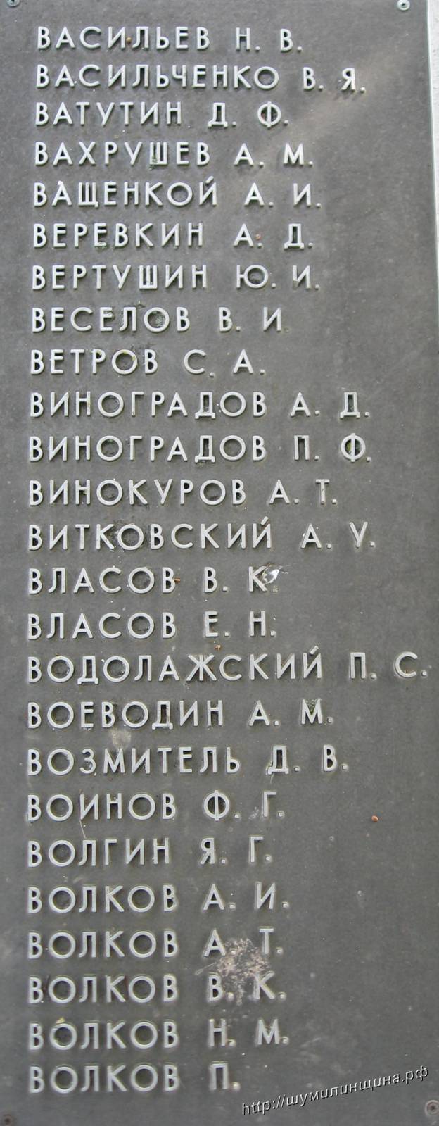 Из них Радостев А.К., Болдин А.П., Томилов А.Ф. увековечены на плитах и числятся перезахоронеными воле деревни Дворище Шумилинского района.