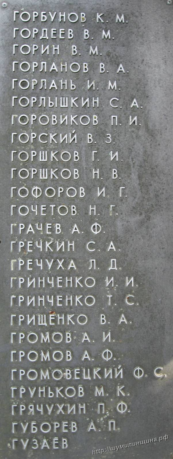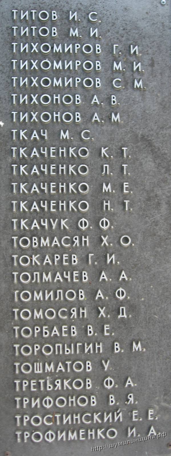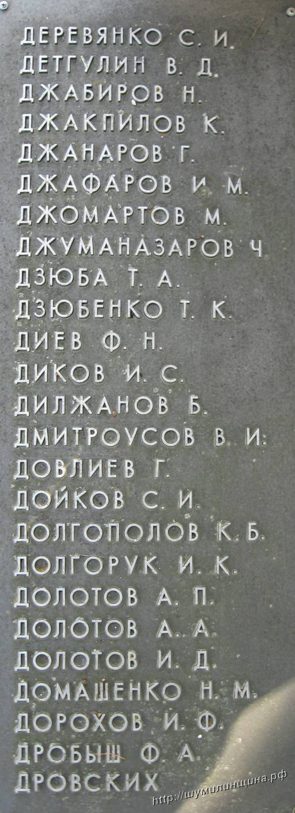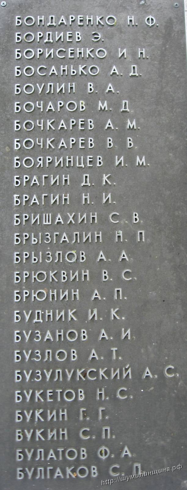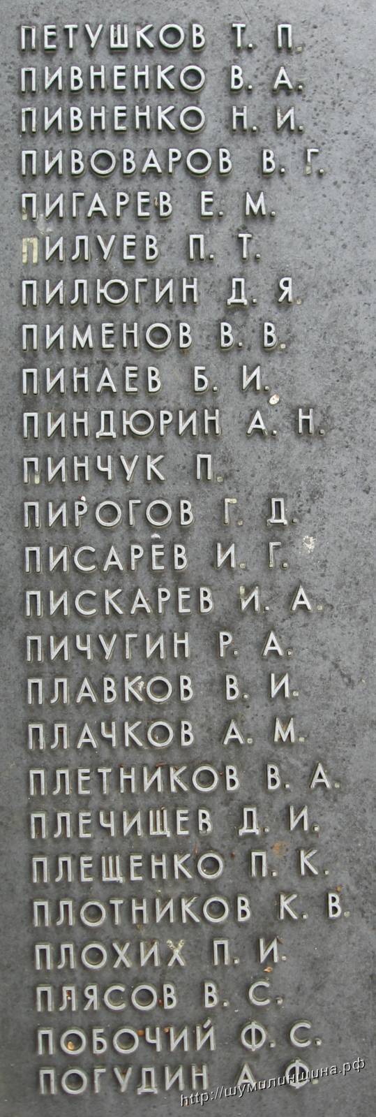 Из них Радостев А.К., Болдин А.П., Томилов А.Ф. увековечены на плитах и числятся перезахоронеными воле деревни Дворище Шумилинского района.