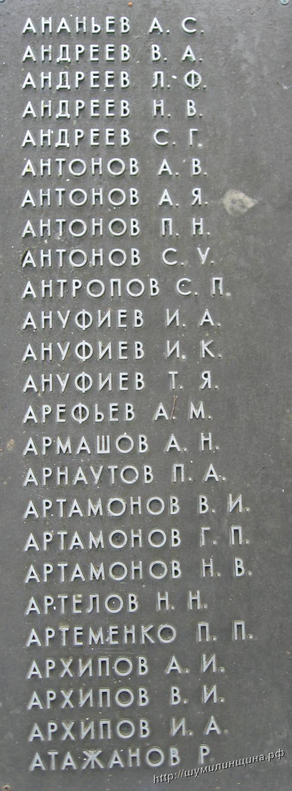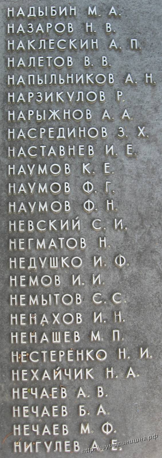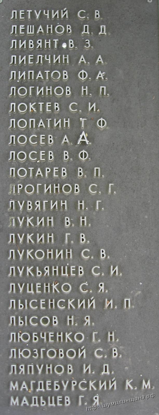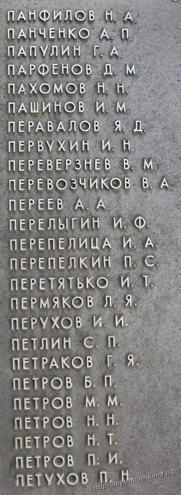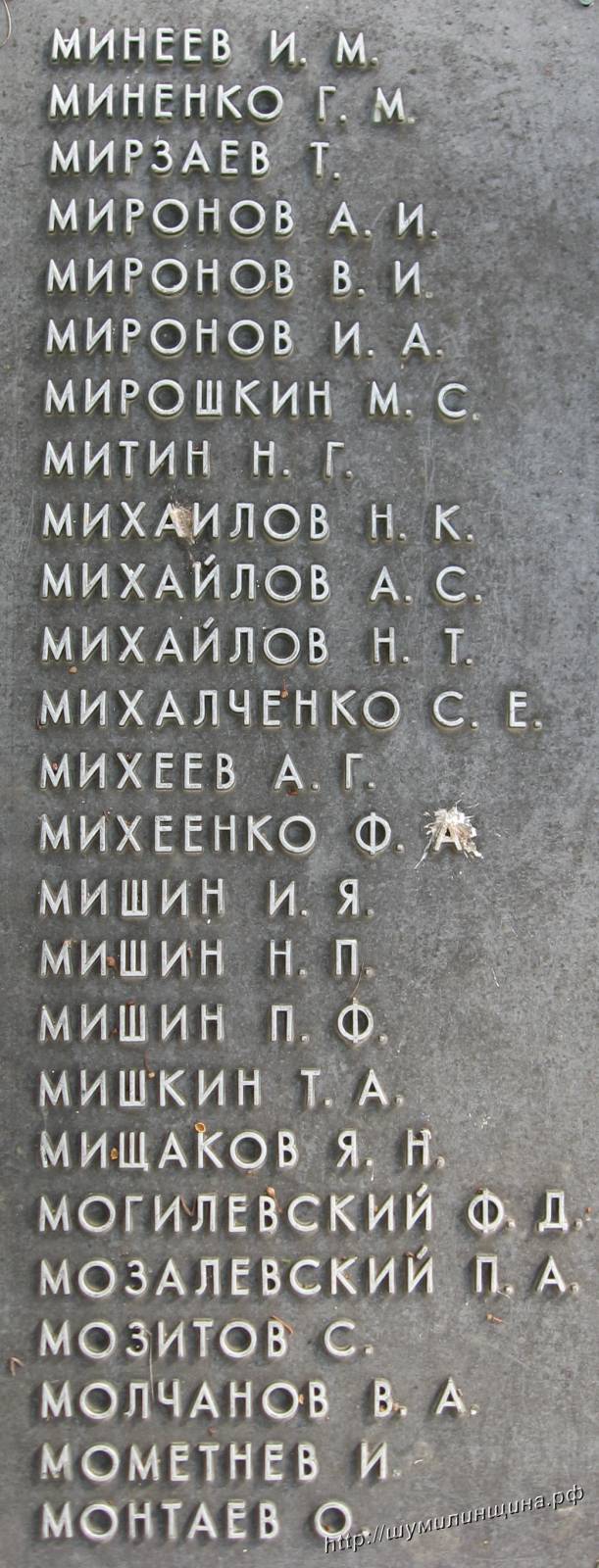 Из них Радостев А.К., Болдин А.П., Томилов А.Ф. увековечены на плитах и числятся перезахоронеными воле деревни Дворище Шумилинского района.
