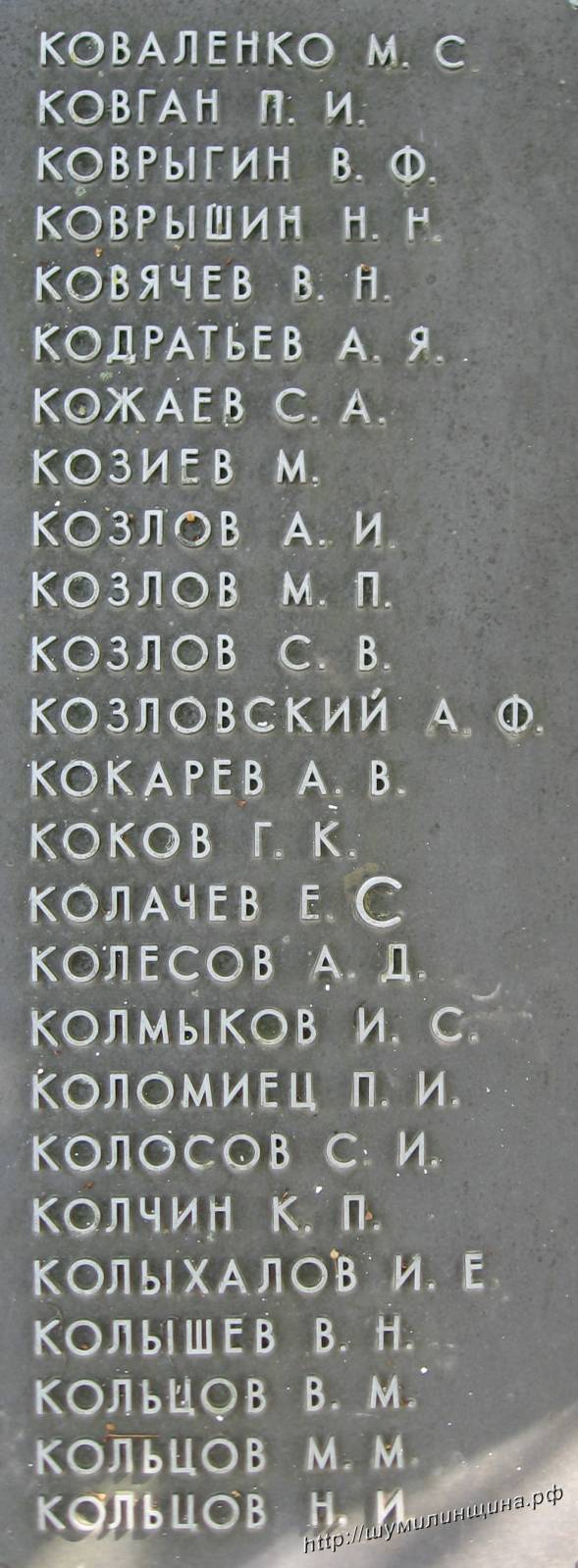 Мой дед погиб в д. Козоногово, там был захоронен.Все погибшие из этой деревни были перезахоронены здесь, но ИМЯ моего деда здесь не выбито. Куда было перезахоронение? Где мне его искать? Подскажите, пожалуйста. ВОРОНОВ ДМИТРИЙ ЕГОРОВИЧ.