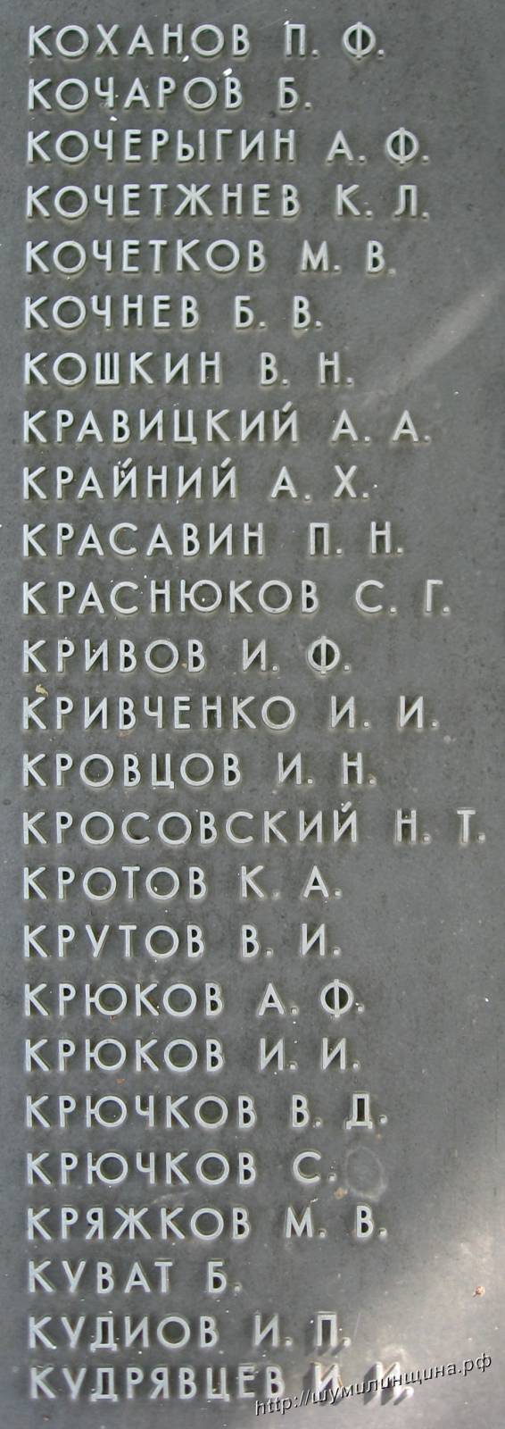 Выражаю огромную благодарность и глубочайшую признательность за Ваш труд. В бою под деревней Жеребычи 29.12.1943 (по другим данным 02.01.1944) погиб мой прадедушка Кулагин Фёдор Васильевич.