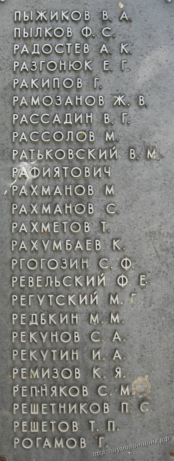 Фамилия не правильно указана на плите. Место Ширинов Р указан ШириповР. Красноармейец призван из Ленинабадского РВК. Это отец моей тёщи.