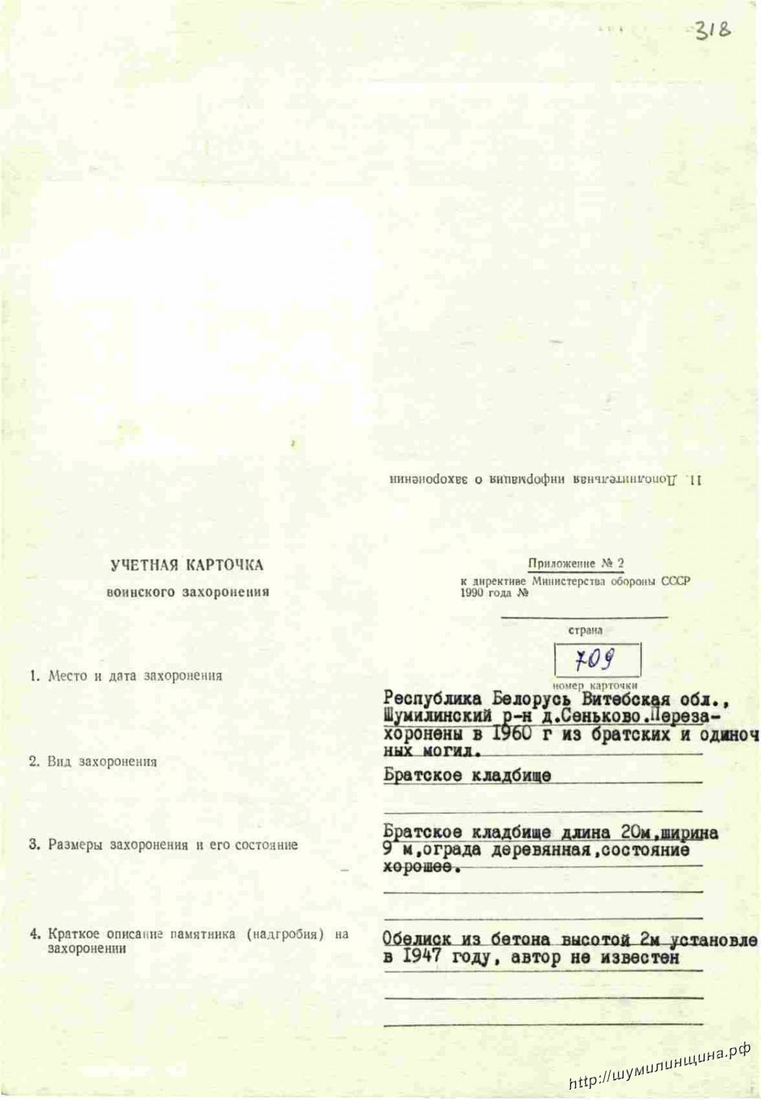 Списки захороненных в Сеньково по данным ОБД Мемориал: