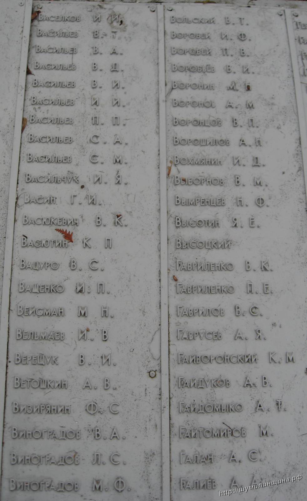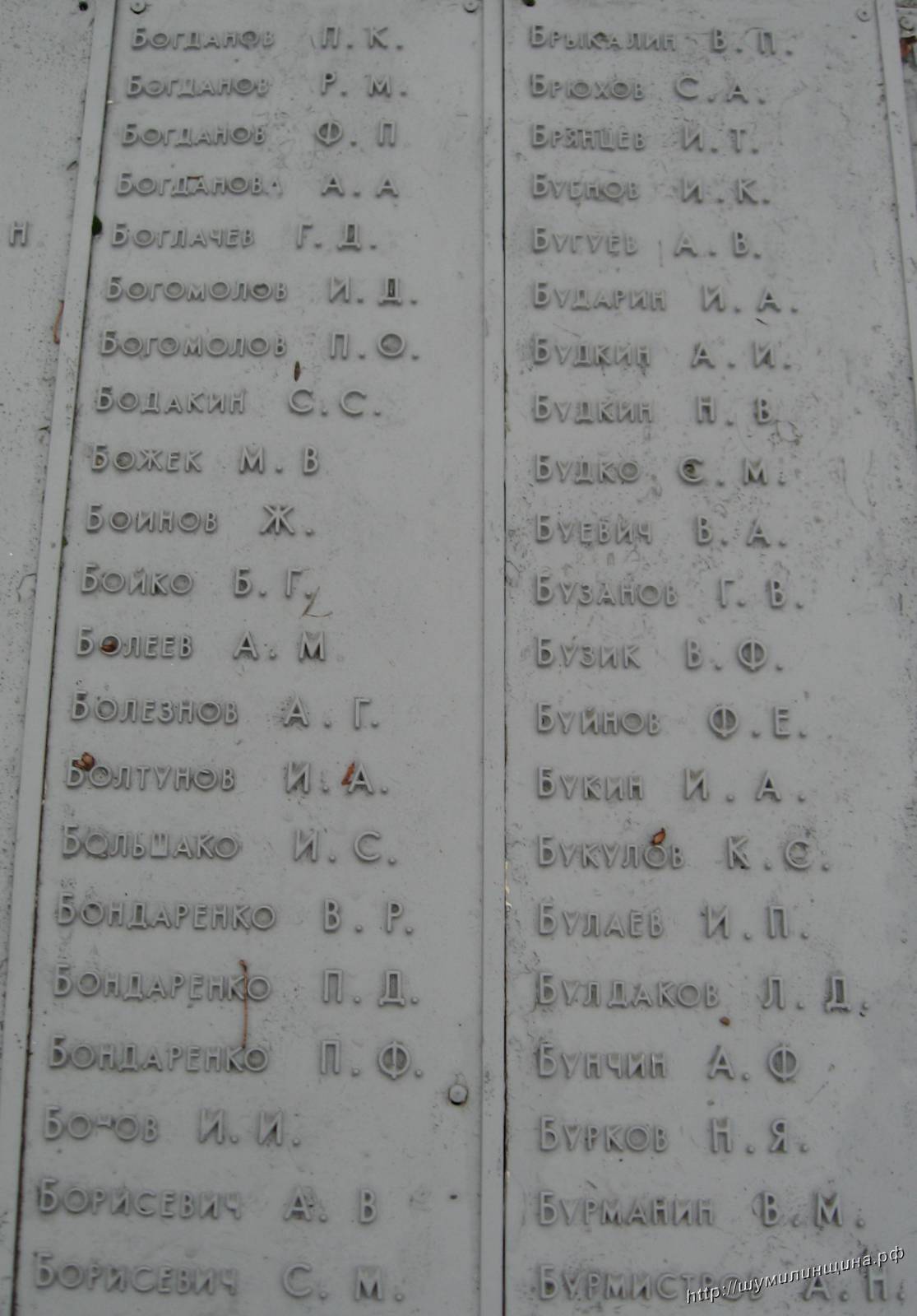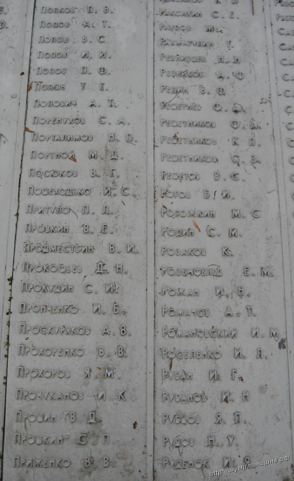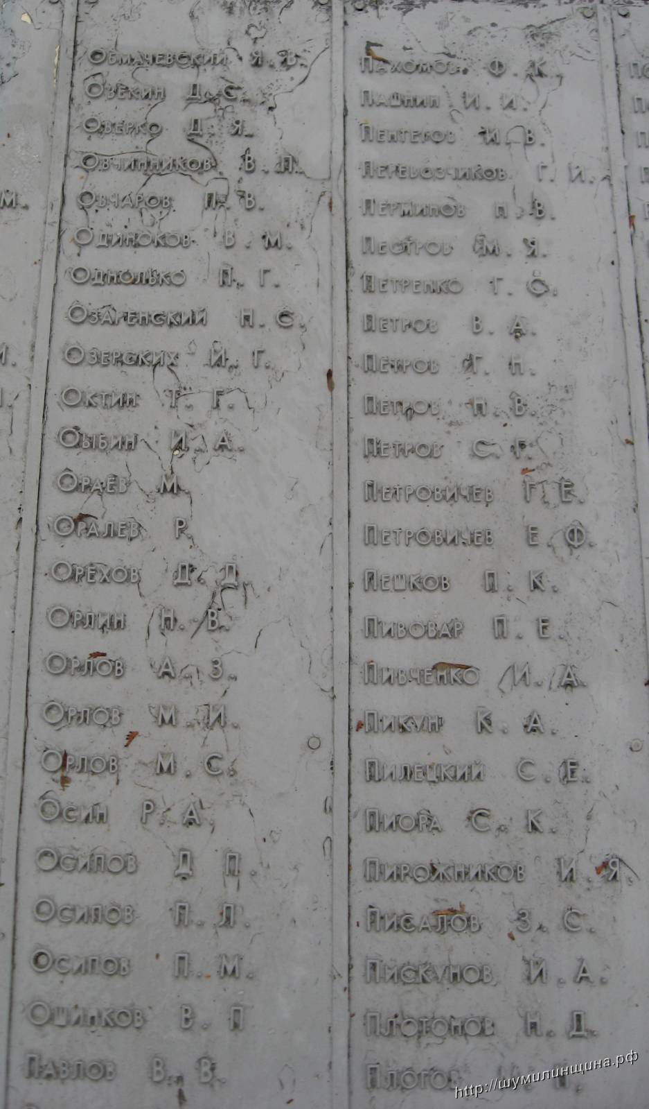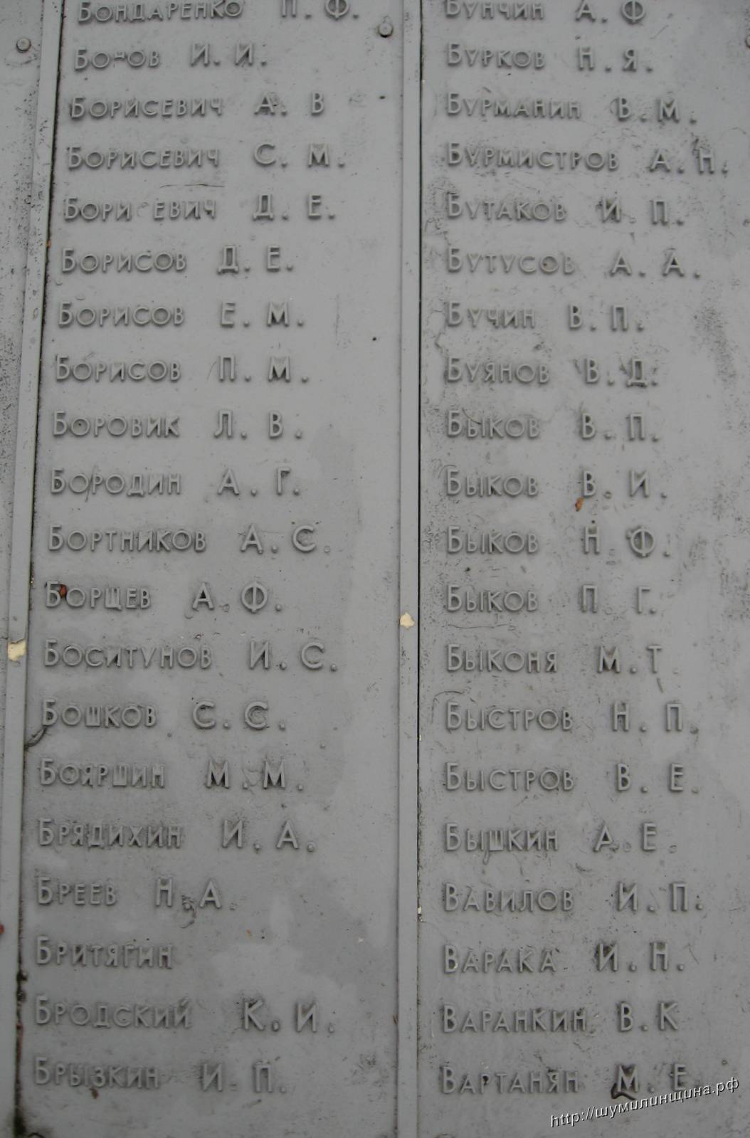 Скажите, пожалуйста, есть списки солдат, захороненных здесь? Я ищу прадеда, знаю, что он похоронен в братской могиле в Шумилинском районе.