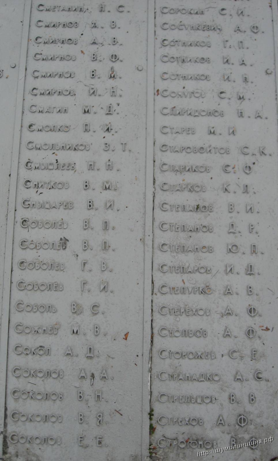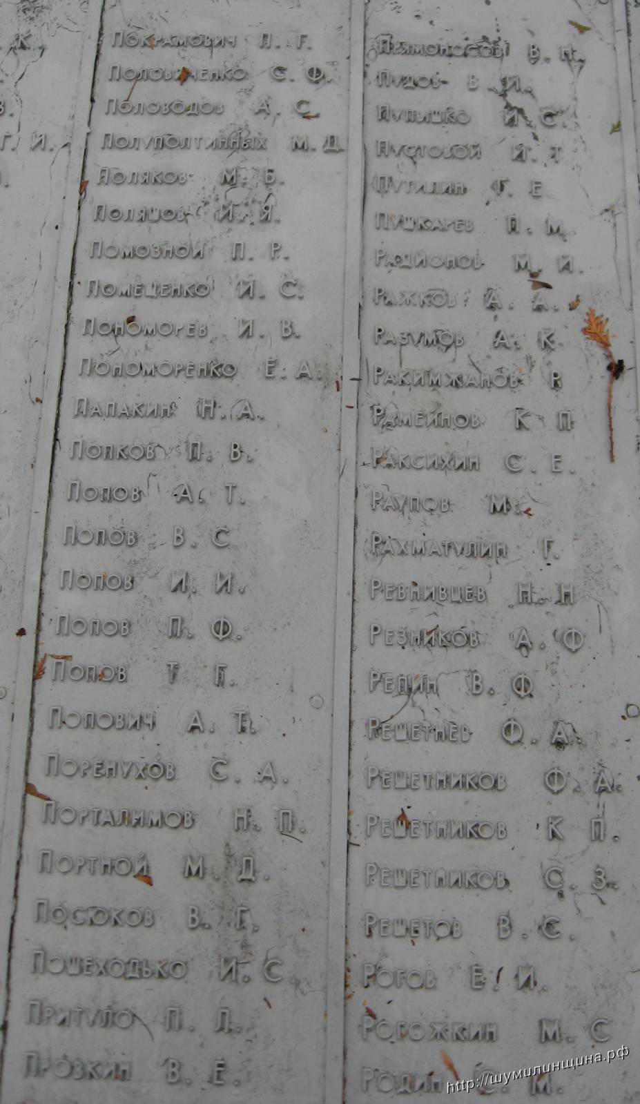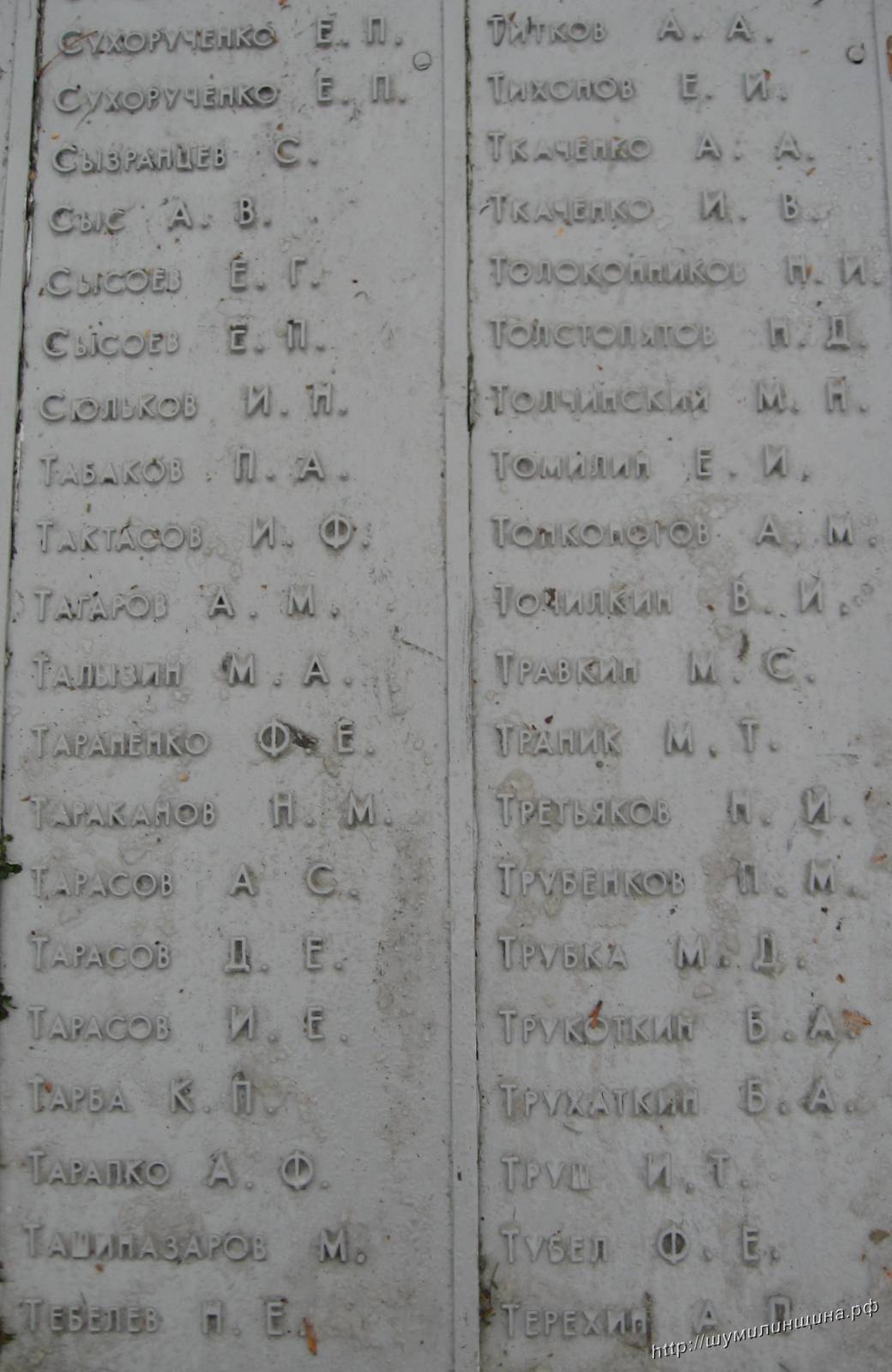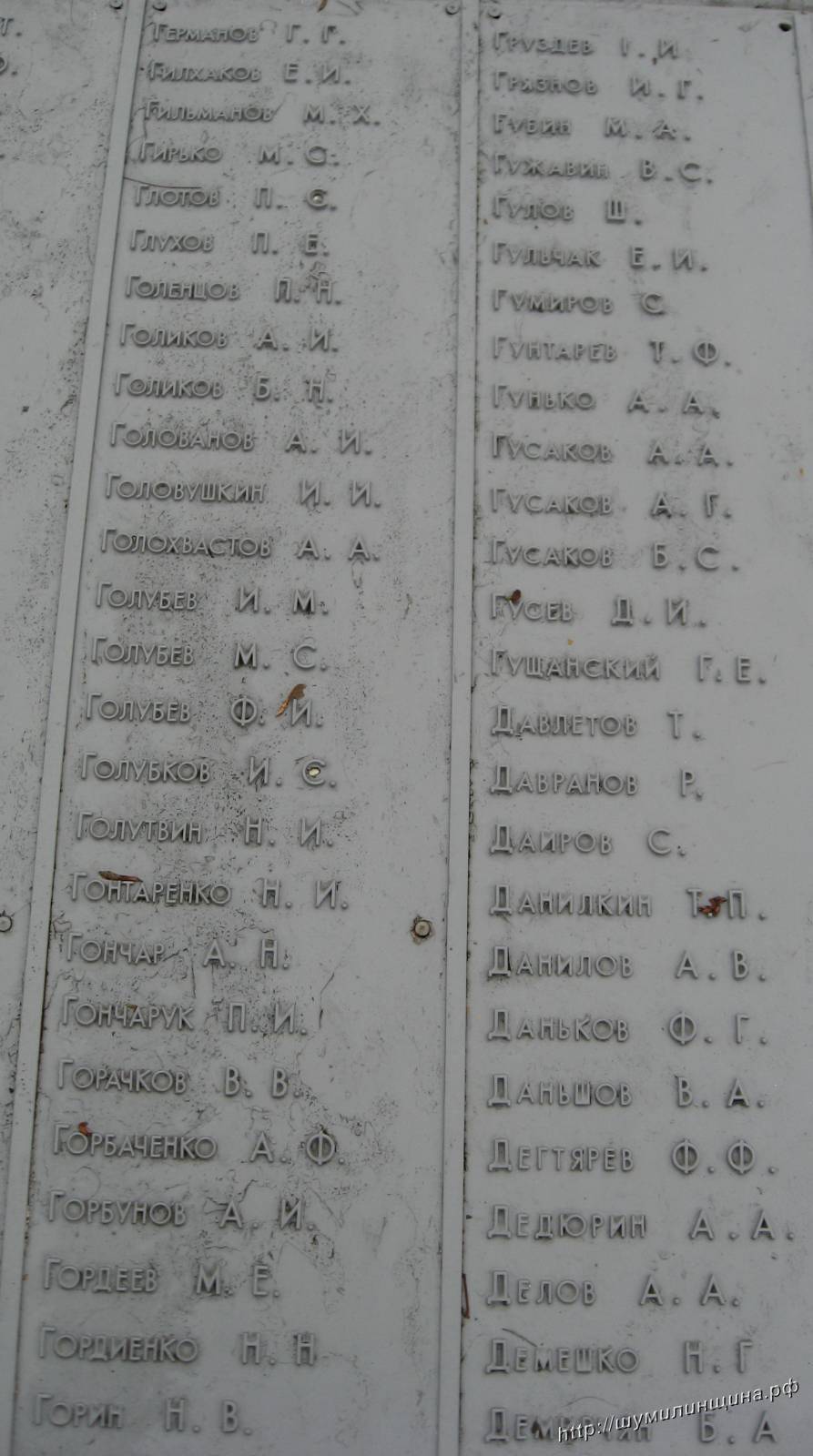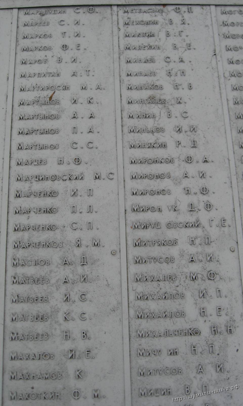 Скажите, пожалуйста, есть списки солдат, захороненных здесь? Я ищу прадеда, знаю, что он похоронен в братской могиле в Шумилинском районе.